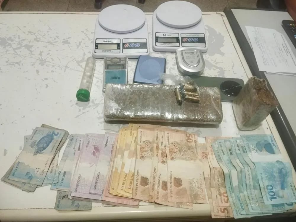 ​Além da droga, a apreensão incluiu munições calibre .38, balanças de precisão, R$ 1.782,00 em espécie, cadernos com anotações, celulares e outros itens comumente utilizados na prática do tráfico de drogas.